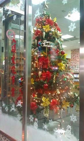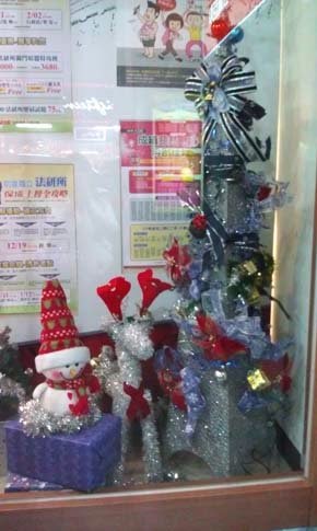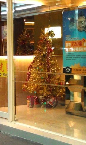 櫥窗裡的聖誕樹:偷拍~21世紀房屋仲介公司的金色聖誕樹、某家補習班櫥窗裡的聖誕樹!