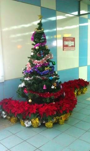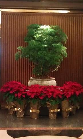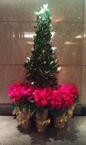 聖誕紅&聖誕樹:本公司大樓的聖誕樹,別小看是用盆栽裝飾的,白色那盆樹...聽說造價"破百萬"呢!穿插一棵健身房裡..禮物聖誕樹!