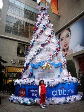 大台北聖誕樹:新光三越站前店,頂天立地的聖誕樹、台北車站裡...有唱歌聖誕老人陪伴的聖誕樹、高雄銀行大門口的聖誕樹!