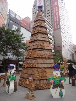 板橋後站的聖誕樹:大遠百白色聖誕樹、後站鬧區的木頭聖誕樹、火車站前又尖又高的聖誕樹!