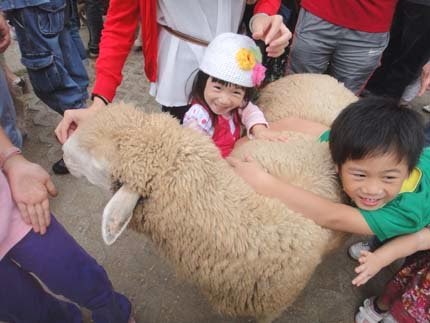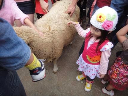 哈哈哈~媽咪顧著拍照,我要摸摸軟綿綿的羊咩咩啦!
