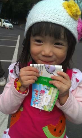 因為~我們走路慢慢...媽咪怕跟不上車,所以我們提早下山,居然碰到小兔子在"上班"供人家拍照"呢!
