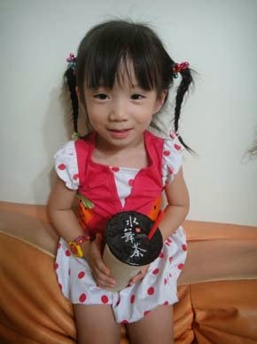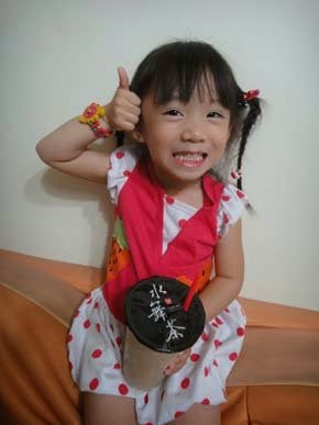 一到家...張小妹抱著飲料,喝著不放~好喝到!自己都會比"讚"呢!