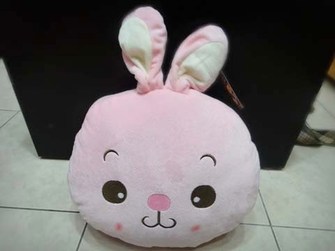 送給國小的姪女~一個可愛的手暖抱枕,這不是一個普通的抱枕喔,兔兔的頭裡有個凹槽,看電視的時候~可以把雙手伸進去取暖!超舒服滴~