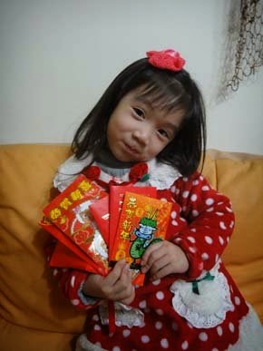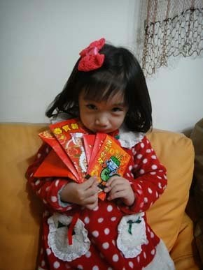 出門拜年~少不了的就是"喜洋洋"的紅包,還有親手自製的"杏仁瓦片"手工餅乾,作為伴手禮~