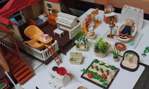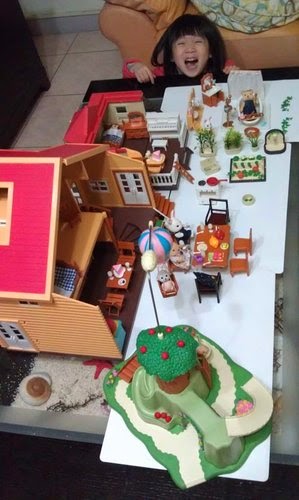 張小妹今年的新年禮物"森林家族"一大組!玩到沉迷.....配件道具買不停~瞧她....開心的哩!
