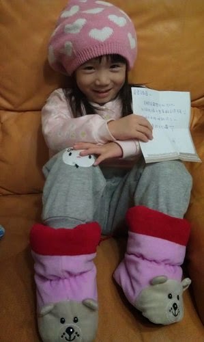 最後~要謝謝椀婷阿姨,特地寄來了一雙新鞋子+一頂可愛的毛帽,給張小妹添新裝~