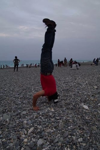 這位攝影大哥~倒立....這個老梗,妳百玩不膩阿~話說..這張黑白照挺帥的,只要....不要看到你的"臉"