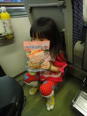 列車長:這位小朋友,聽說你沒買票喔~別以為...用"鱈魚香絲"擋住,就沒事了!