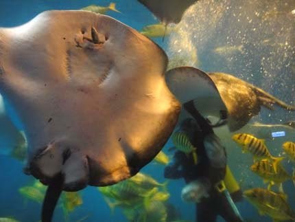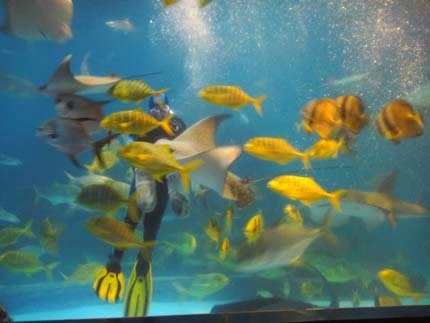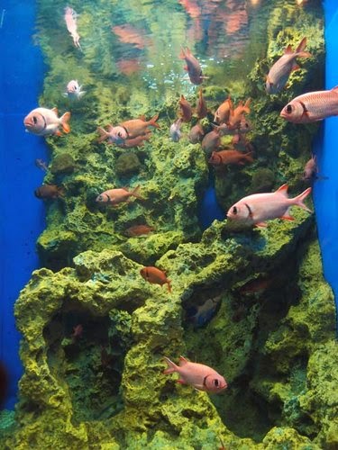 第一站:先來參觀水族館...沿路都有大姐姐們解說生態,可以學到很多水族的知識,龍蝦的眼睛...一次可以看到很多人影~因為它有"複眼"喔!