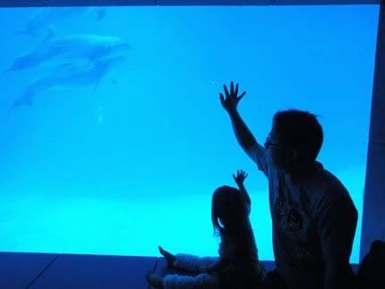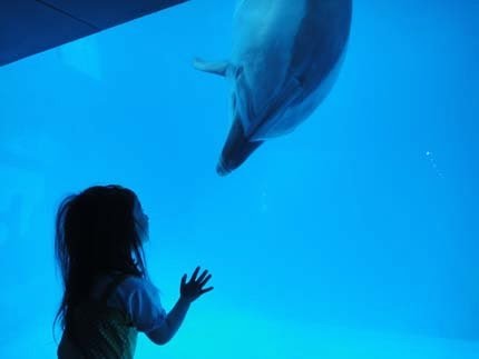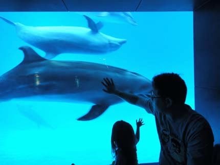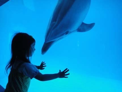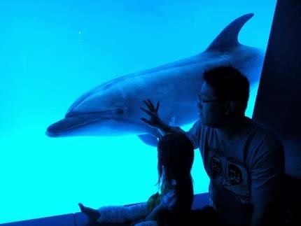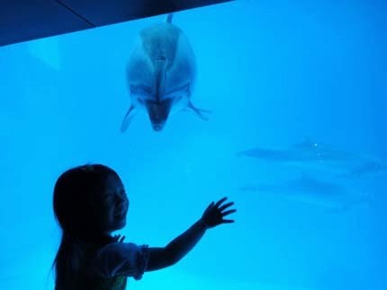 海豚超活潑...一直靠近視窗,非常的近距離.....超可愛!大人小孩....都興奮得不得了!