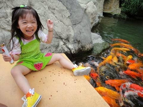 餵食秀~是吧!瞧.....我也會表演喔!我會讓魚魚們~看的到"吃不到"厲害吧!嘿嘿~