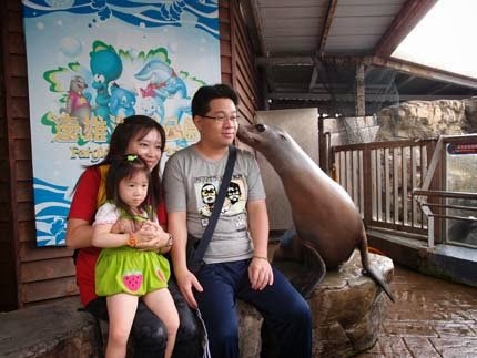 還有....每個人都可以跟海獅"玩親親"贈送照片一張,海獅別這麼無奈嘛....好歹~咱們也是花錢來~給你"親"的耶!