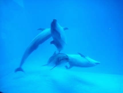 今晚....一共有四支海豚陪我們共眠~很幸運的是....這四隻海豚是"表演豚"受過訓練的!所以..一點也不怕生!還很愛玩呢~