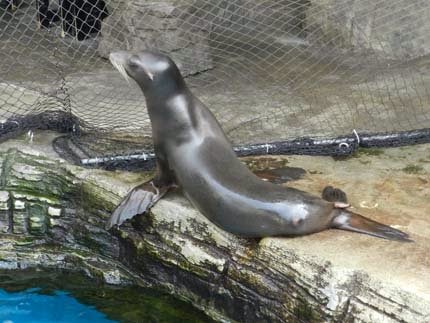 張小妹很害怕~好在沒大哭....不然會嚇到可愛的海獅呢!
