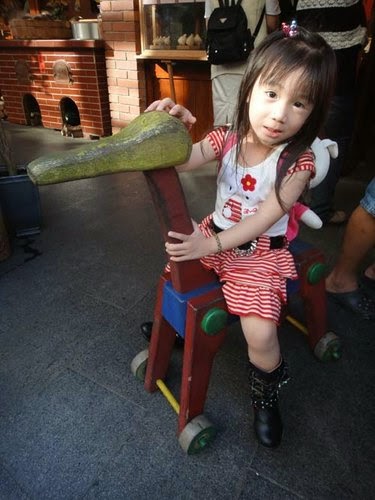 一進門....就看見可愛的"豬"來迎接我們!不過....小朋友還是不敢靠近啦~
