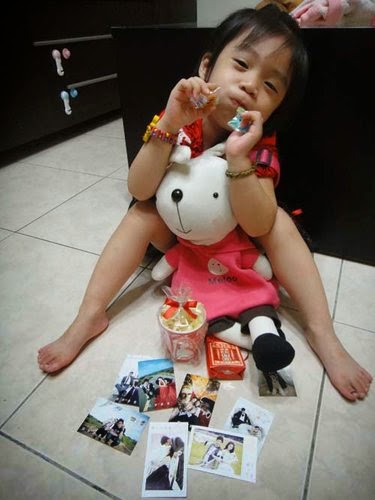說要帶她來看新娘子,瞧她....樂的很!