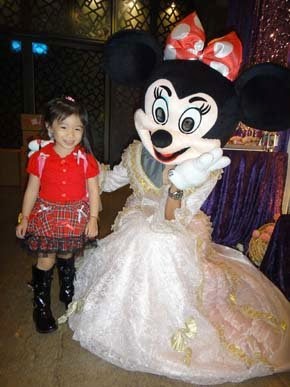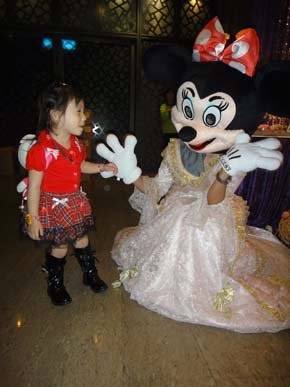 回說:我有看到米老鼠耶,她還給我手牽手,還把我抱起來!