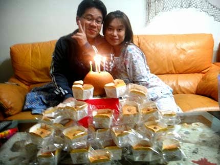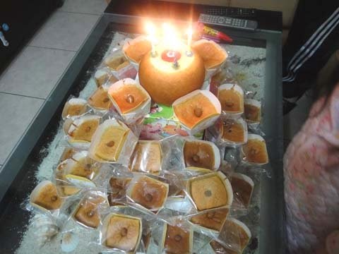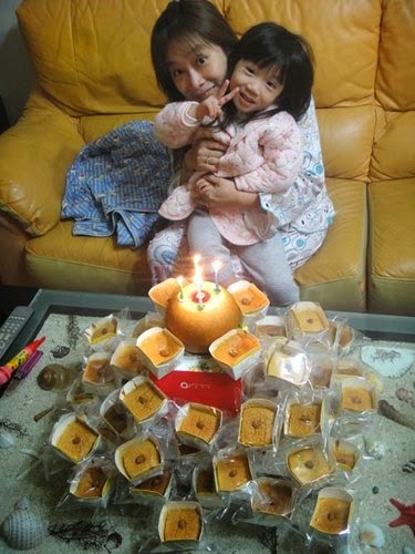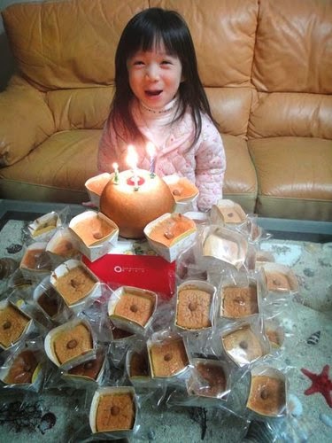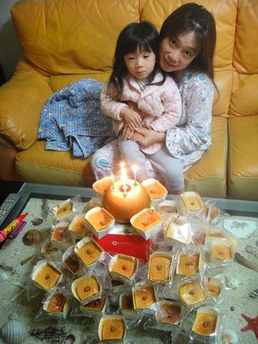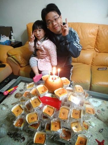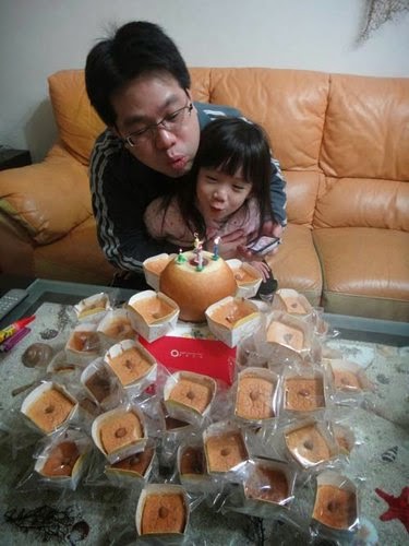 恰巧....老爺跟了公司的團購,買了"蘋果年輪蛋糕"就借花獻彿....當成生日蛋糕嚕!