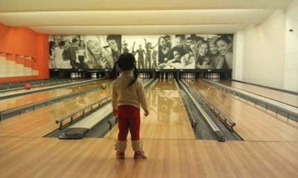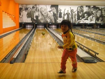 我才知道,現在的保齡球館...居然開發起,賺兒童錢啦~這招奏效,果然....假日週週客滿呢!