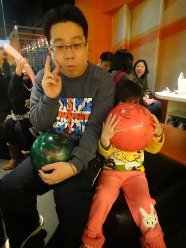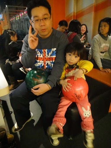 今天在這兩個小姊妹來運動一下,球場還有提供"寶寶專用"保齡球鞋喔!真的是太卡哇伊了~