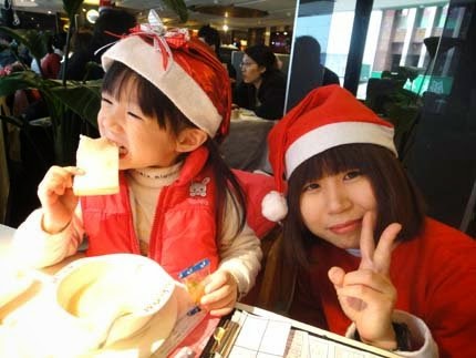 可愛的聖誕姊姊要來跟她合影,她居然顧著吃....完全不理人真是不給面子呀~