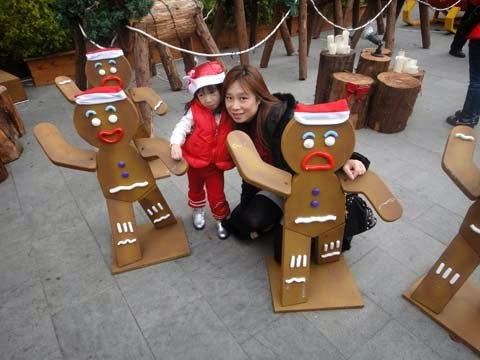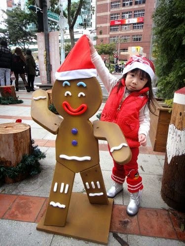 媽咪~你看!薑餅人...跟我帶一樣的聖誕帽耶!