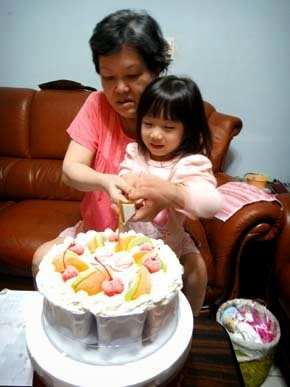 最辛苦的阿嬤,最努力賺錢的爸比,陪小妞一起切下~她人生的第四個蛋糕