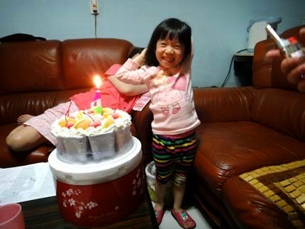 大家一起幫她唱:生日快樂歌!她笑到嘴吧合不攏呢.....