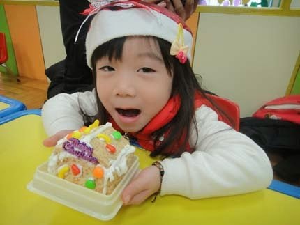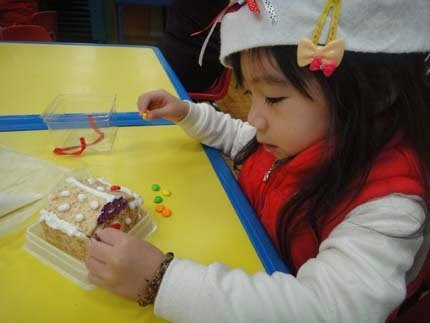 除了帶動唱、玩遊戲以外~還要教小朋友製作"薑餅屋"