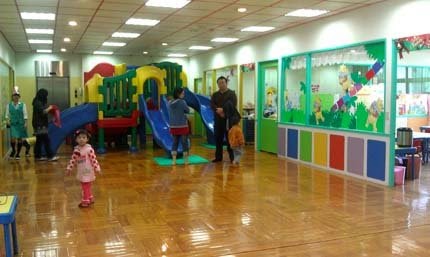 一、園內活動空間很大,每一層樓都有遊樂設施,小朋友專用的廁所,園所後方連接著戶外的大公園!