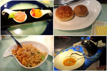 張小妞也接受招待了...沙瓦、玉米濃湯、香檳、櫻花蝦炒飯~全程免費.....台塑企業果然海派!