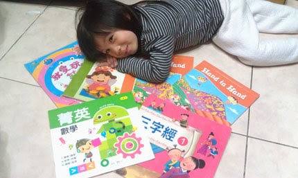 學校的教材不少~但是....每本都是她的最愛,一下課回家!