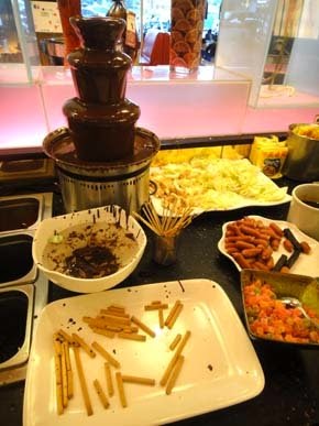 熱門的巧克力塔、水果區、汽水區、請享用!