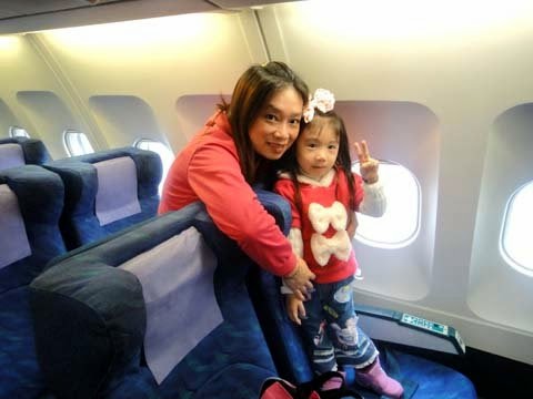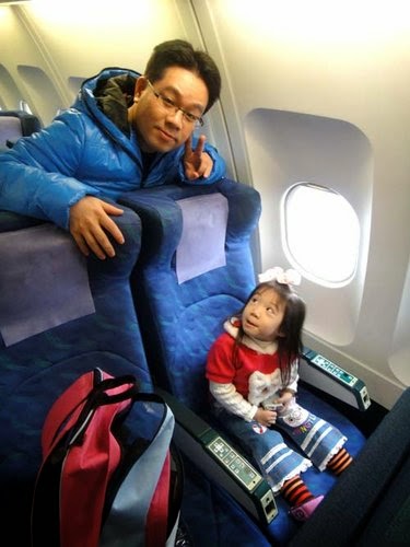小妞跟她爸比坐上飛機~很興奮!孰不知....她老媽還滿怕坐飛機的呢!