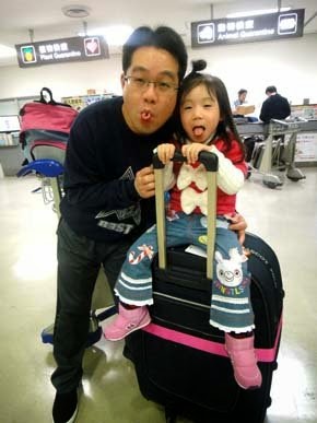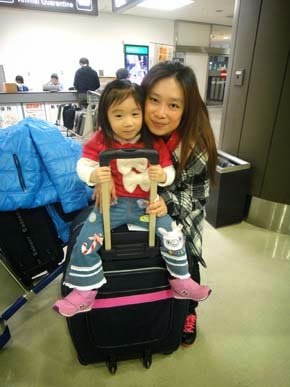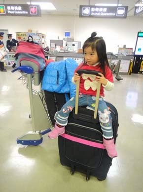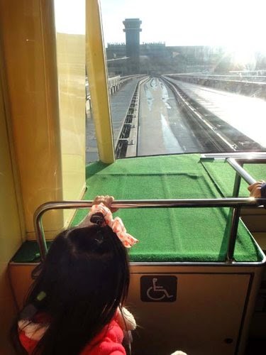 到達日本機場啦~有趣的軌道接駁車來接送,小妞好奇的看世界!
