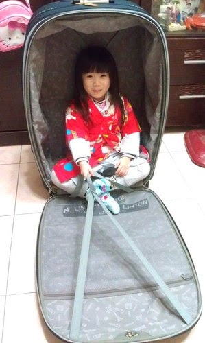 我媽咪說:如果我裝的下"行李箱"就不用買機票啦!我的人生第一本護照~