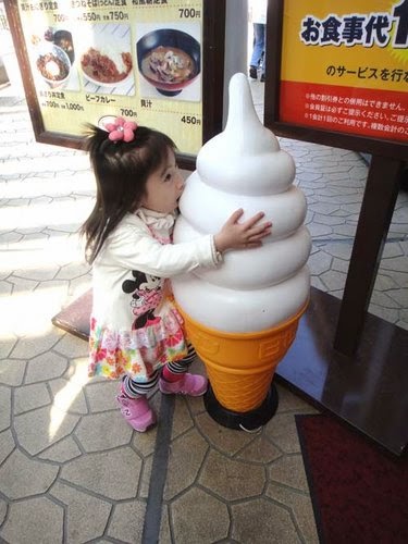 看到冰淇淋模型~要演一下,不幫她拍照...會生氣呢!