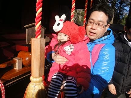 日本拜拜的流程就是:淨口>淨手~入境隨俗...張小妞也學得有模有樣呢!