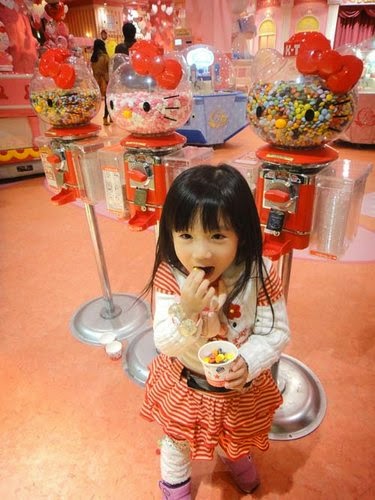 正當小妞吵著要轉糖果.....老媽正在猶豫不決時~小妞居然...在糖果機口,發現了一枚日幣200元,剛好轉一次糖果!
