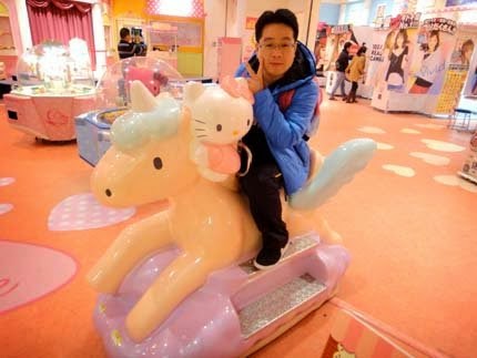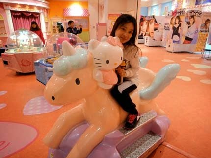 張小妞...被整個粉色系迷的團團轉,看到可愛的電動台..忍不住湊上去尋寶!