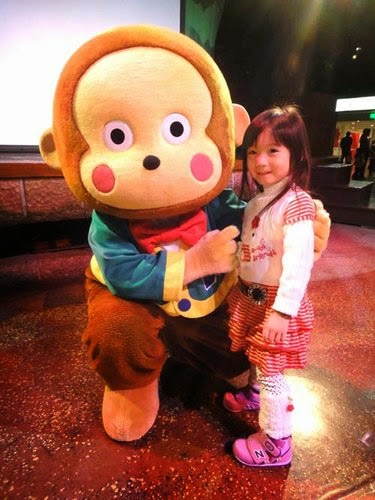 小朋友與人偶的帶動唱遊戲時間,張小妞一點也不怕生,直接衝到人群裡....跟著小朋友又唱又跳,看的大伯大嫂,笑呵呵!