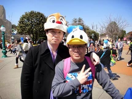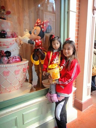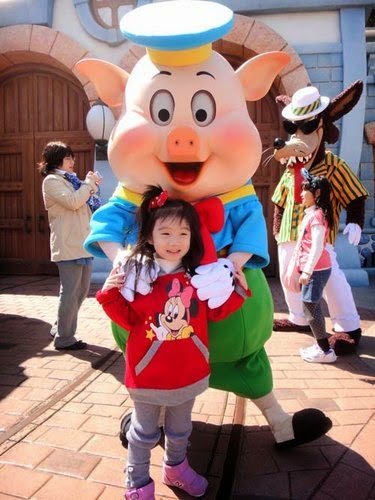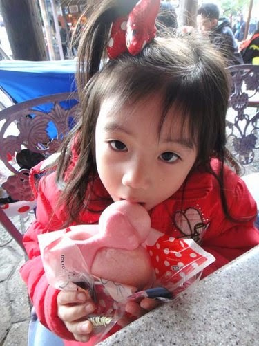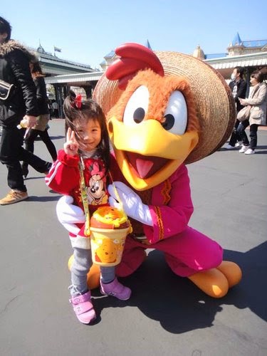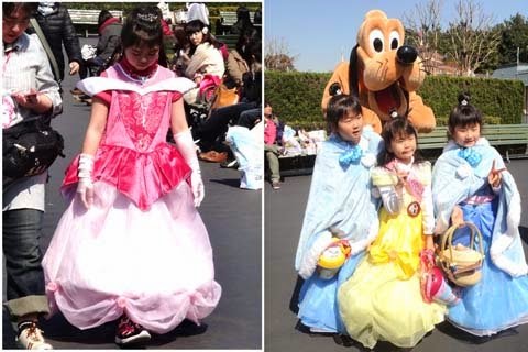 一定要跟迪士尼的創辦人合拍一下,日本小女生...不畏寒冷,都著公主裝入園呢!