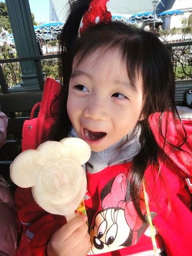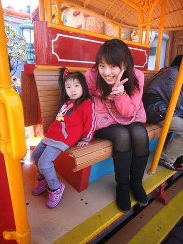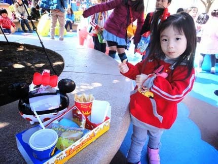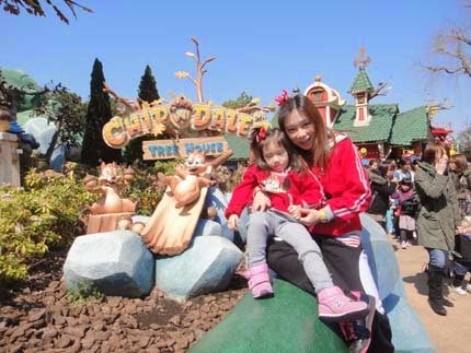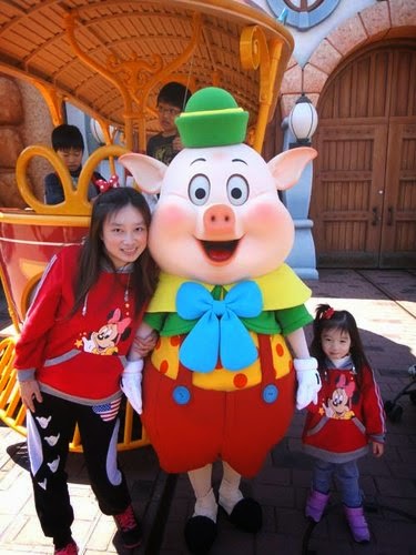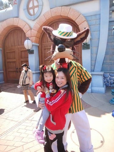 大家都在排隊玩遊樂設施,小妞趁機會,跟卡通人物互動,也玩得好開心!
