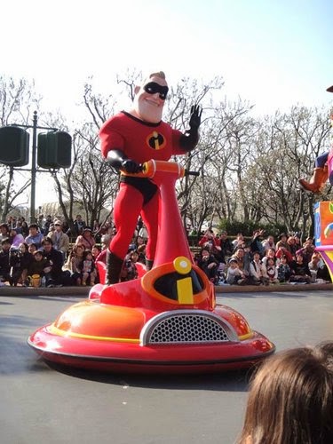 率先出現的是~米妮,我們選的方向....剛好是"逆光"所以....都必須瞇著眼睛看遊行!大失誤~