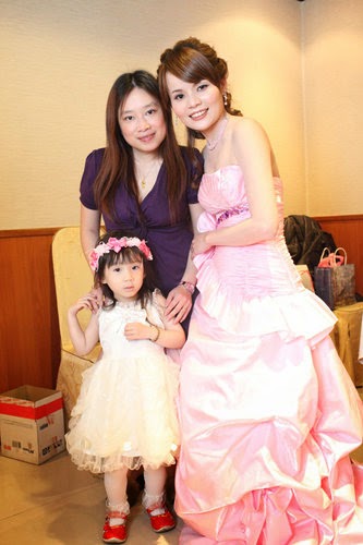 趁著阿姨換第二套,我也要卸下我的小禮服,跟阿姨拍個合照,這套粉紅色澎澎禮服好美喔!