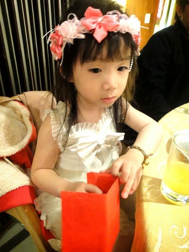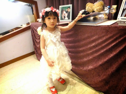 我的小禮服很漂亮吧~媽咪幫我準備許久的"小花圈環"今天終於派上用場了!