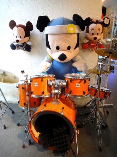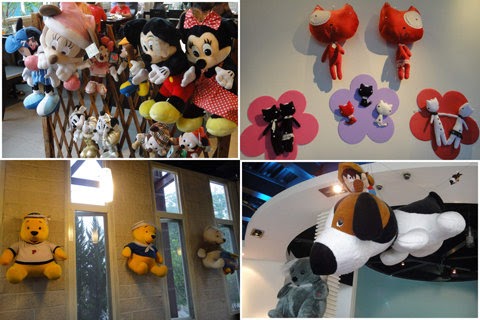 好可愛的米奇樂隊,牆壁上掛滿了布娃娃~