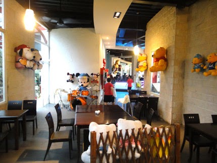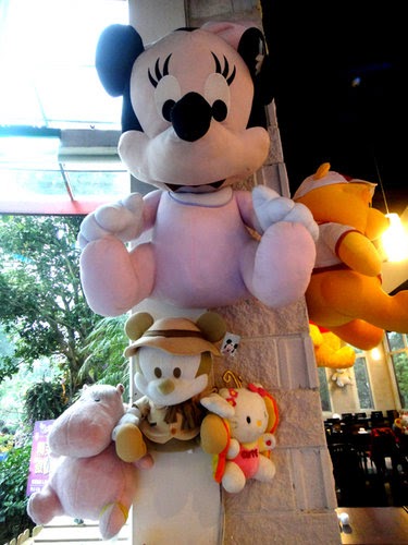 這間的老闆,應該很有赤子之心....到處都是布娃娃的造景!