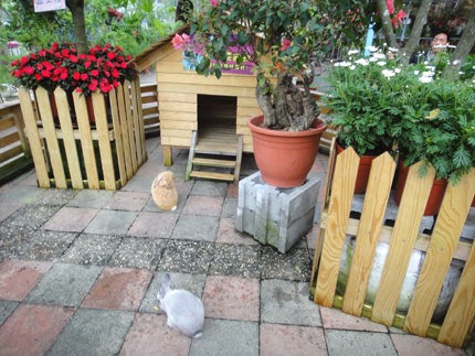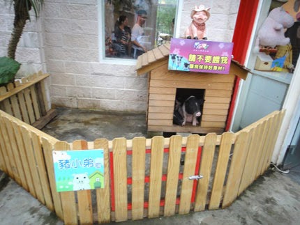 三支小豬的家,就在餐廳正門口...不過它們房舍很乾淨喔!不會有惡臭味~